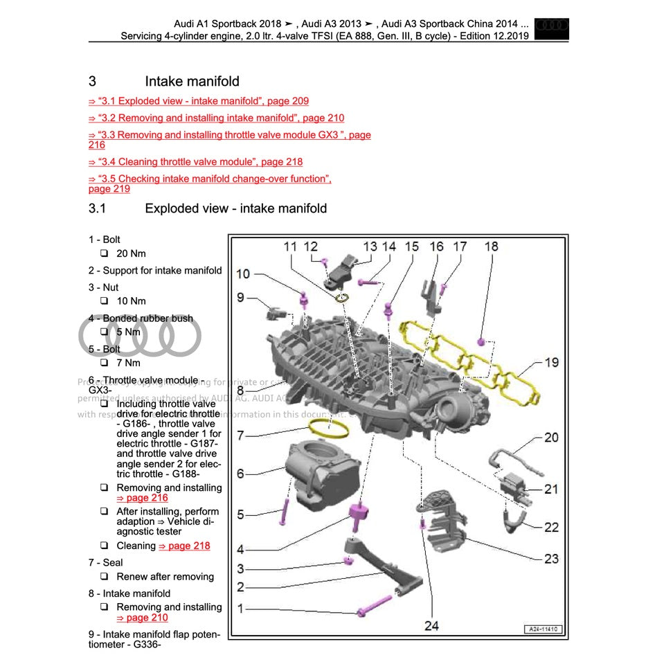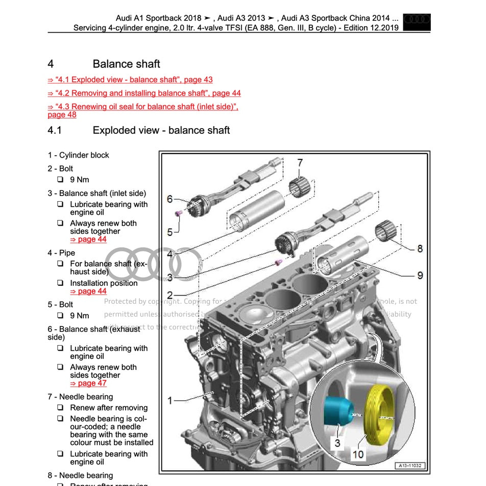 – 4-cylinder direct injection engine (1.8, 2.0 ltr. 4-valve TFSI – generation III)